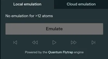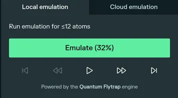 Section titled “Limitations”The local emulation behavior will depend on the size of the register. Up to 6 qubits, this emulation is instantaneous. From 6 to 12 qubits, the emulation time will depend on the complexity of the experiment.
